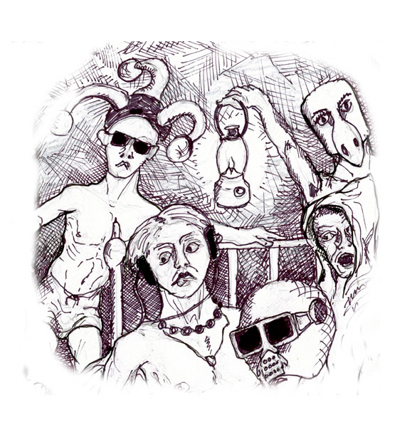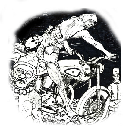 Preparatory Sketches for a re-newed project that explores the imagery of Rimbaud's poem Le Batesau Ivre re-envisionedfor the Rock and Roll era.